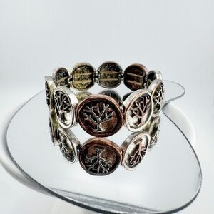 Vintage Tree of Life Coins Stretch Bracelet Timeless Symbolism Retro