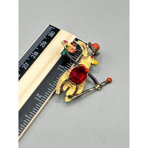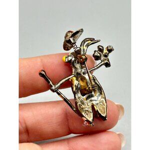 Tags: Vintage bunny pin, Trembler Pin, Magician Brooch, Magician Bunny, Trembling Hat, Flowers, Cane, figural pin brooch, costume jewelry, circus clown brooch, statement pin, funny, joker, jeweled stone