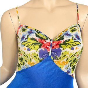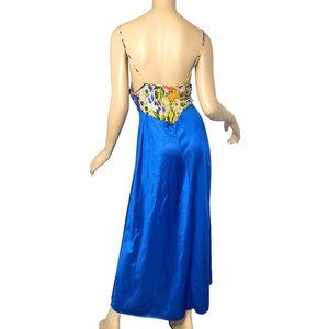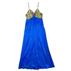 Vintage Tres Chic Nightgown Maxi Gown Blue Sheer Floral Print Size Large