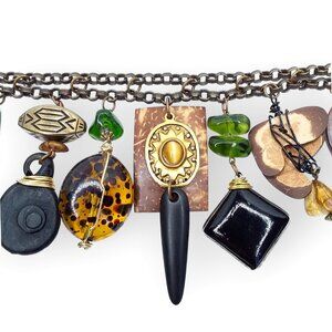 Vintage Treska Necklace Choker Hanging Beads Glass Clay Wood Boho Tribal USA 17"