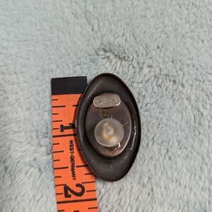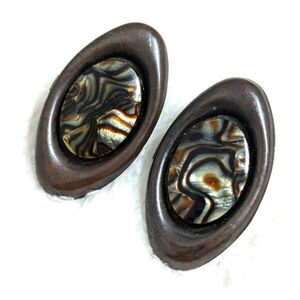 Vintage Treska Oblong Bronze/Grey Tone Metal and Faux Abalone Pierced Earrings
