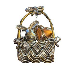 Vintage Tri Tone Easter Whimsical Bunny Rabbit Basket Heart Pin Brooch Pendant