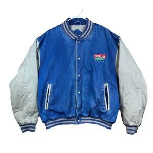 Vintage Tri-Mountain CropLand Genetics Co-Op Denim Varsity Jacket 2XL USA
