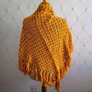 Vintage Triangle Shawl • Gold Knit • Crocheted Wrap • One Size Fits Most