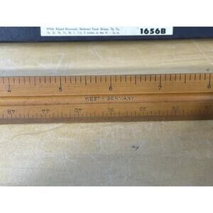 Dietzgen wooden ruler, West Germany, with storage sleeve. Sleeve is damaged.