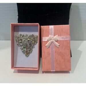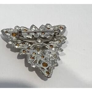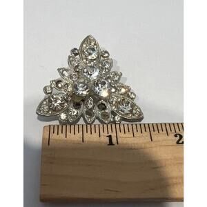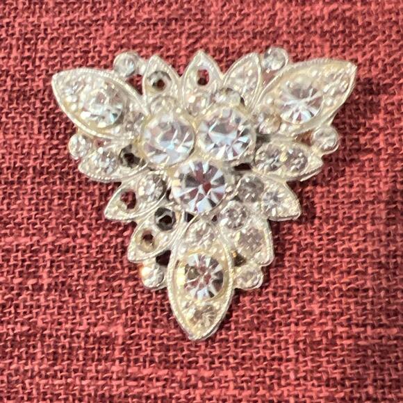 The intricate triangular design adds a unique and delicate touch to the brooch, the beautiful clear sparkly rhinestones are an added touch of elegance.