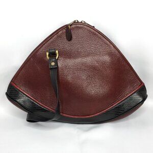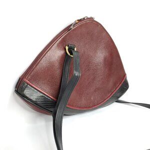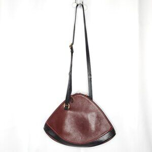 Vintage Triangular Leather Crossbody Purse Burgundy Red Black Bar Harbor Classic
