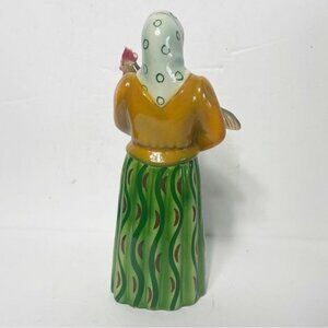 Colorful and charming ceramic figurine representing a peasant woman in vibrant attire, holding a chicken. Ideal for collectors or home decor.