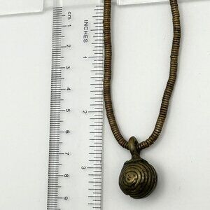 Vintage Tribal Brass Bell Pendant Necklace Ethnic Boho Statement Jewelry 17 inch