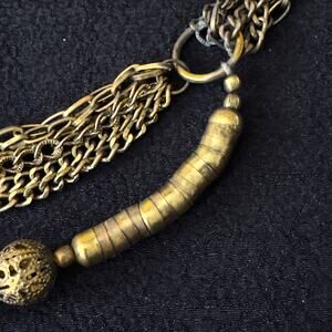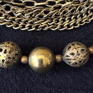 Vintage Tribal Brass Chain Necklace 777g Filigree Globe Beads Multi-Strand
