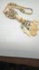 Preowned excellent condition. A beautiful handcarved bead necklace with dangles ( lock, key and leaves). Measurements: Necklace Length: almost 22", the pendant with dangles is 5.5" long. It weighs 4.3 oz and it has a J shaped hook as a clasp.