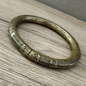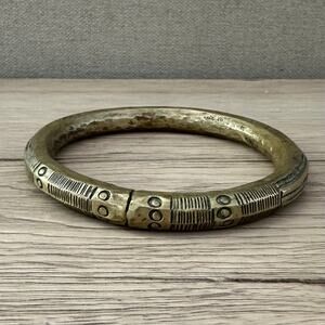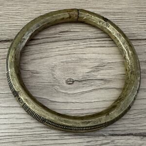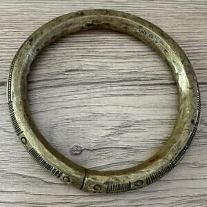 Vintage Tribal Heavy Large Etched Metal Bangle Bracelet
