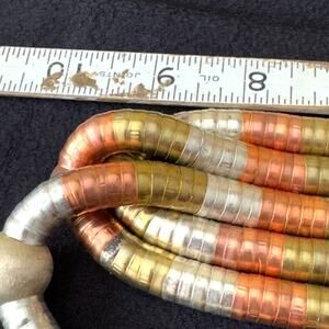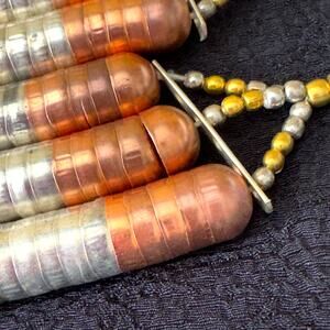 Vintage Tribal Necklace Mixed Metal Deco Beads Copper Brass Silver 3 Strand 18”