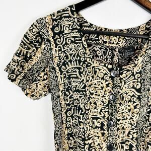 Vintage Tribal Print Unique Short Sleeve Romper 100% Rayon Size Small