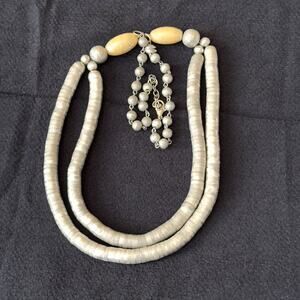 Vintage Tribal Silver Tone Necklace 2 Strand 867g 2 Resin Beads Heavy 1970s-90s