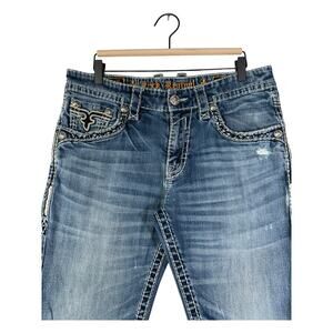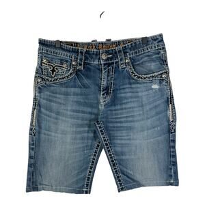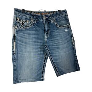 Vintage Tribal Straight Leg Bermuda Denim Jean Shorts 34