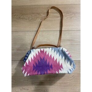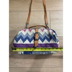 Vintage Tribal Woven Bag Purse Leather Strap Southwestern Aztec Chevron Pattern