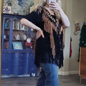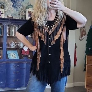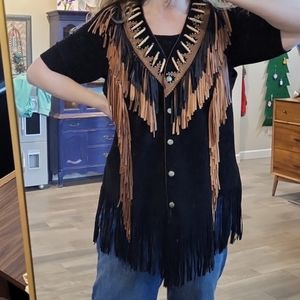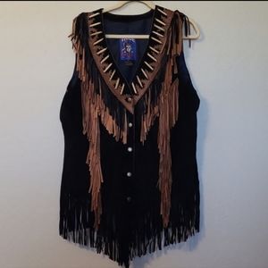 Vintage Tribe America Western Leather Fringe Bone Accent Plus Size Black Size 20