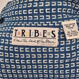 VINTAGE TRIBES FROM THE LAND OF THE BRAVE TEAL BUTTON FRONT SHORT SLEEVE SHIRT L