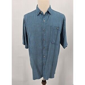 Vintage Tribes From the Land of the Brave Teal Button Front Short Sleeve Shirt L