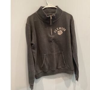 Vintage Triblend Sweats League Quarter Zip Size Medium M Clemson Tiger Grey SC