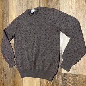 Vintage Tricots St Raphael 100% Pure Wool Sweater Mens Small Brown Geometric Dad