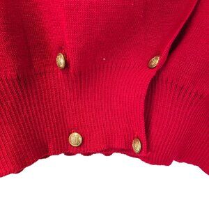 Vintage 100% wool cardigan sweater that is collared and has gold buttons at the waist.