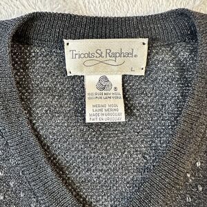 * Vintage Tricots St Raphael Wool Sweater Adult Size Large V Neck Grey
