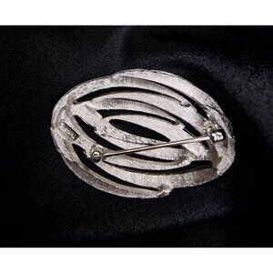Vintage Trifari 1960s Silver-Tone Oval Swirl Brooch Pin Jewelry