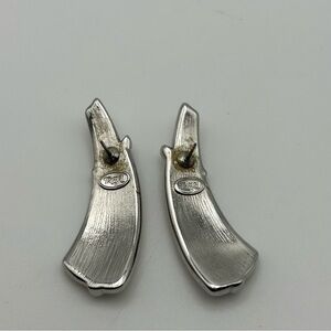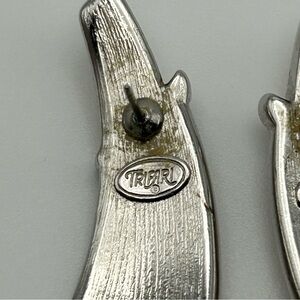 Vintage Trifari Abstract Long White Cream Enamel Stud Statement Earrings