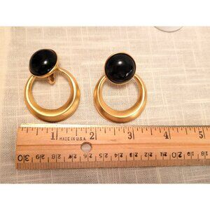 Vintage Trifari Black & Gold Clip-On Earrings & Statement Bead Necklace Set
