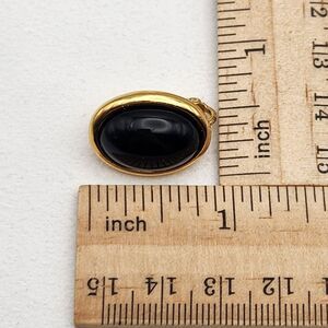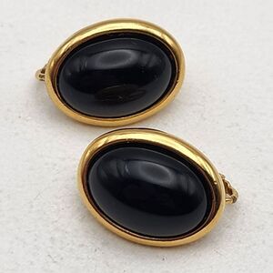 Vintage Trifari Black Oval Cabachon Lucite Gold Tone Earrings Approximately 1"