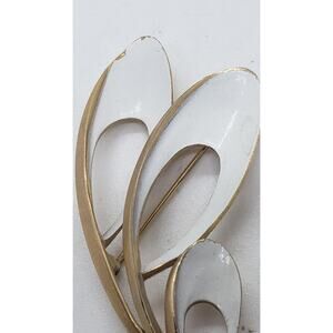 Vintage Trifari Brooch White Enamel Gold Tone Modernist Floral Leaf Design