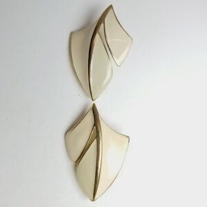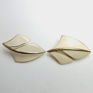 Vintage Trifari Cream and Gold Tone Clip On Earrings Retro 80s 90s Style, Signed