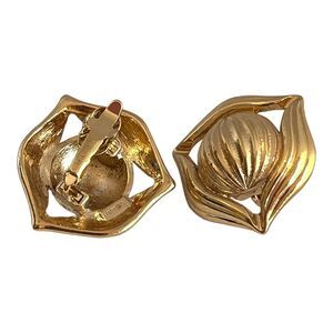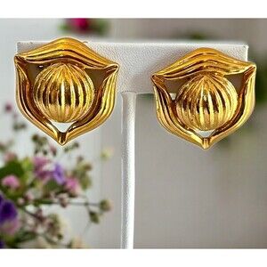 Vintage Trifari Earrings Gold Tone Clip On Dramatic Retro Classic Chic 6Q