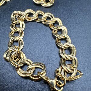 Vintage Trifari Gold Tone Double Curb Link Chain Necklace Bracelet Earrings set