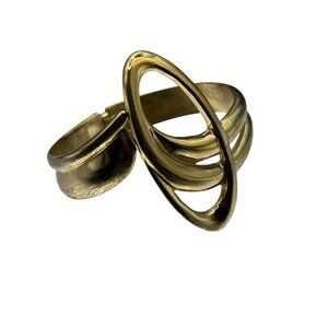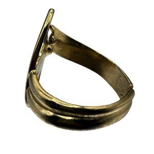 Vintage Trifari Gold Tone Open Oval Hinged Bangle Bracelet Signed