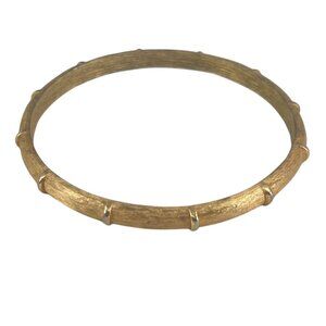 This vintage Triafari bamboo-inspired bracelet exudes timeless charm with its textured gold-tone design. Its lightweight and elegant structure make it a tasteful accessory for both casual and formal settings. The 2.5-inch diameter ensures a comfortable fit, adding a touch of sophistication to any outfit. A classic piece that embodies understated beauty.