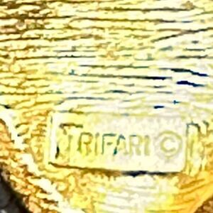 Vintage Trifari Goldtone signed Mid Century Mod Fluted Satin Design FISH Brooch grannycore