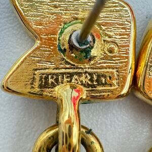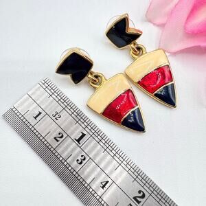 Vintage Trifari Nautical Flag Earrings Cream Red Blue Enamel Signed Preppy Chic