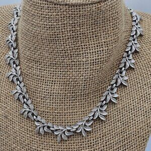Vintage Trifari Silver-Tone Leaf Necklace 16 Inches Adjustable With Elegant Text