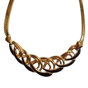 Vintage Trifari Gold Tone Black Enamel Serpentine Chain Choker Necklace. In Great Pre-owned Condition with minor age related changes . See all photos for details and measurements
