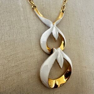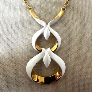 Vintage Trifari White Enamel & Gold-Tone Pendant Necklace ✨