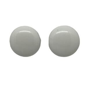 These vintage earrings feature a simple yet elegant design with large, round white discs as the focal point. The earrings are clip-on style, allowing for comfortable wear without the need for pierced ears.