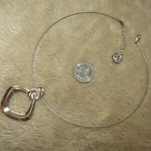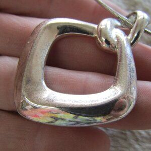 Vintage Trifari signed silver tone cable necklace with silver tone abstract pendant. Needs a bit of cleaning and has light scuffs on the pendant. Necklace measures 16" long, with a 1.5" extender. ##F