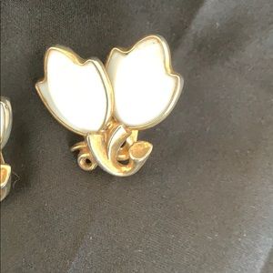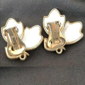 Circa 1940s crown Trifari clip on petal earrings Gold is muted White has some staining