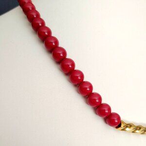 Vintage Trifari rusty red beaded necklace with twisted gold curved center bar