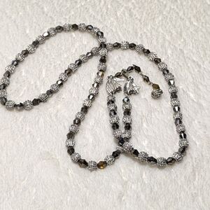 Vintage Trifari Crown 1962 White Rhodium Beaded Necklace "Electra Collection"