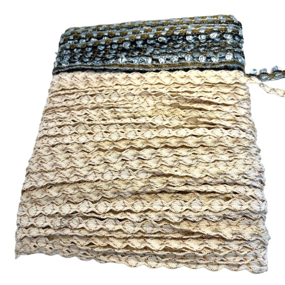 Vintage Trim 13 Yards 9" Blue Brown, 32 Yards 22" White Gold