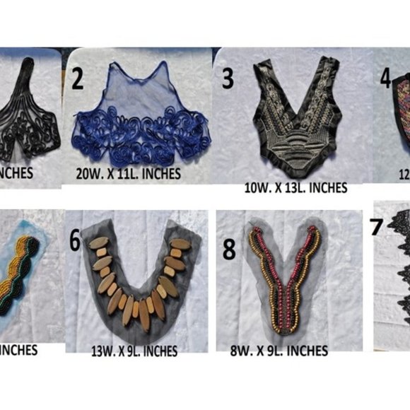 Please refer to photos for more details If you have any questions feel free to message me .They are expensive trims but I need space that's why I give them cheap large quantities available I HAVE MORE THAN 500 FOR STYLE You can choose10 pieces you have 51 different, styles just send me the numbers in a text what I need 10 x $10